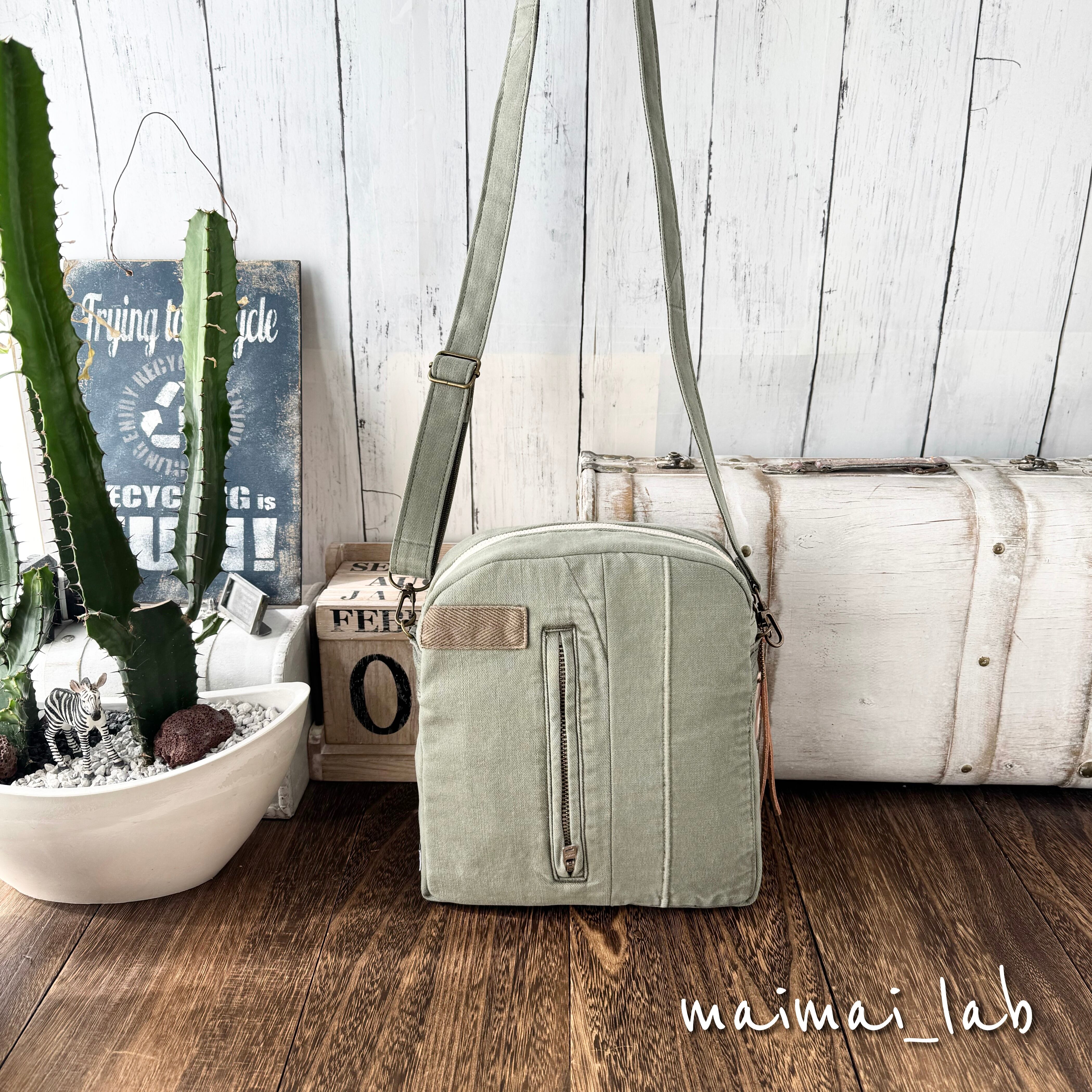 共布で作ったショルダーストラップ付き
