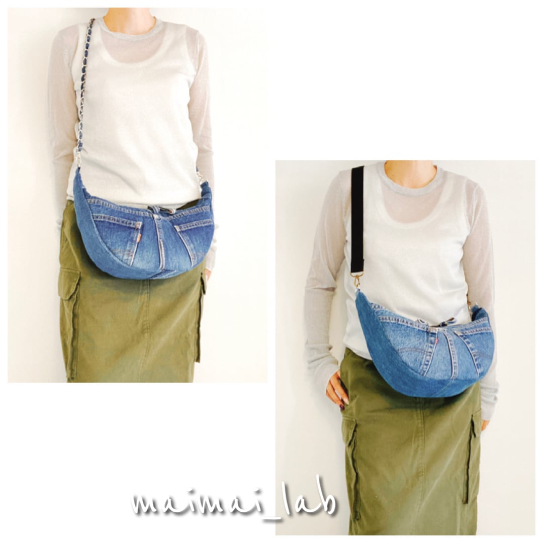 デニムチェーンのデニムの色味は濃いめ、薄めのどちらかをバッグに合わせてお作り致します。