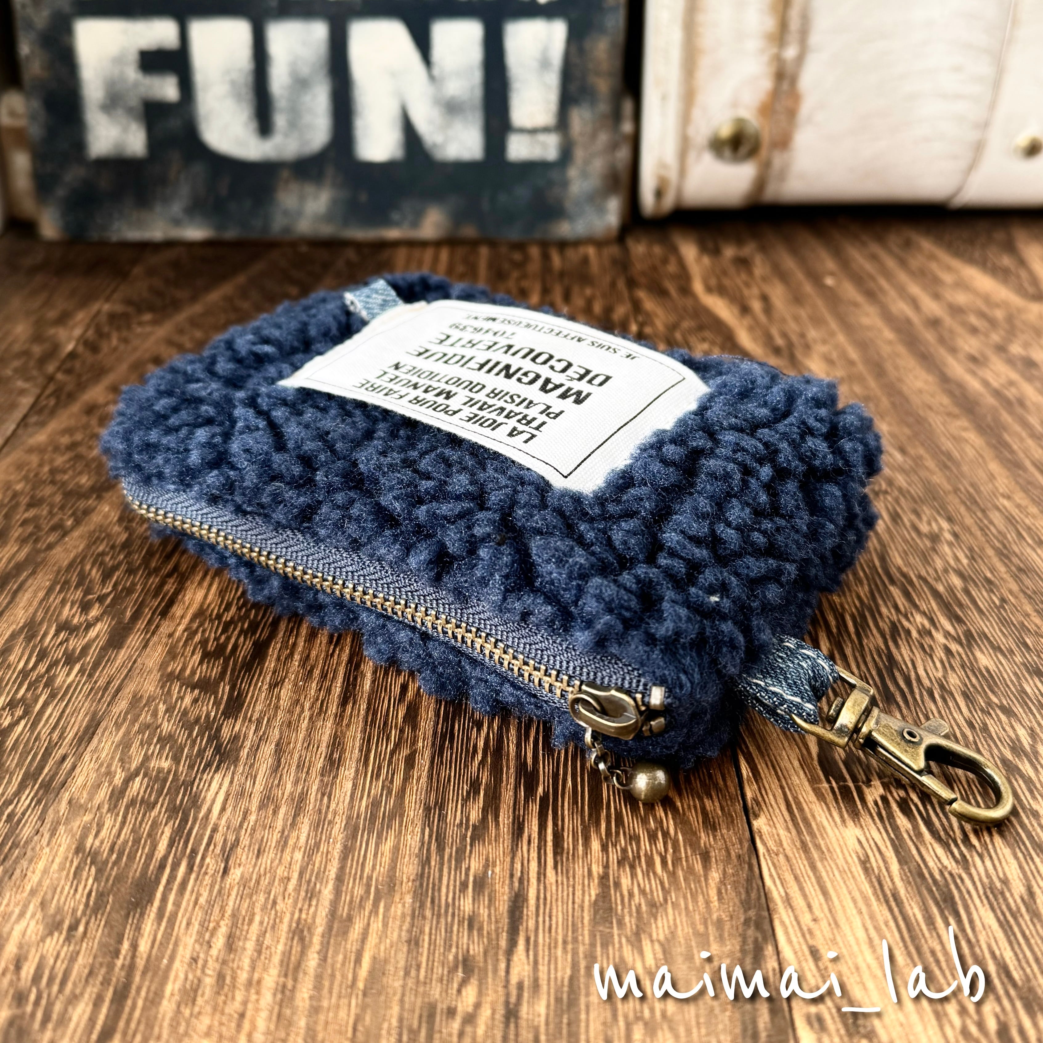 ネイビーのもこもこと大きめタグの組み合わせが可愛い